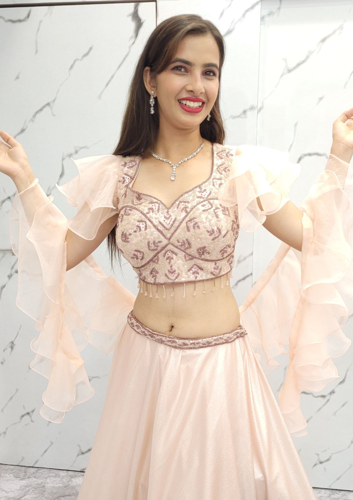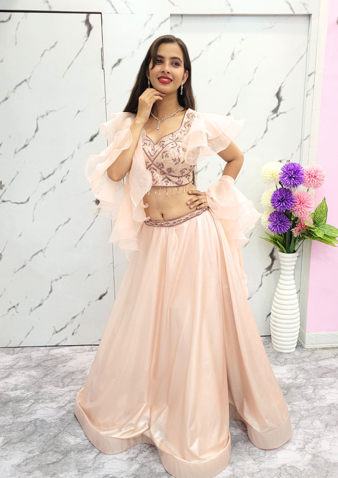• Regal Peach Crop Top Lehenga