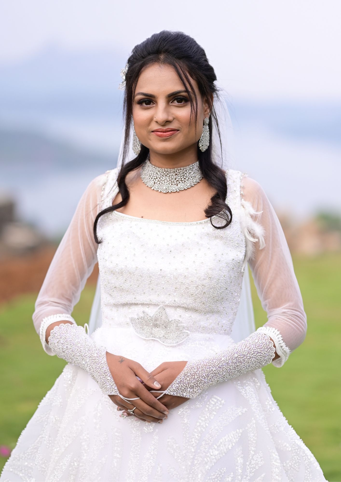 Dreamy White Wedding Bridal Gown with Veil Walk down the aisle in pure elegance with this exquisite white wedding gown, designed from delicate net fabric that creates a soft, ethereal silhouette. The gown features a timeless white hue, symbolizing grace and purity, while the flowing veil adds an extra touch of romance and tradition. Perfect for brides looking for a classic yet contemporary look, this gown offers both sophistication and style, making your special day even more magical. Rent this enchanting white wedding gown from TREND ON RENT and create memories that last a lifetime! You will get the Veil and gloves along. Please note, the jewelry shown in the images are not part of this gown. Jewelry can be rented separately. Book this divine bridal gown directly online, or contact us on 9322985234 for personalized assistance with your booking at TREND ON RENT.