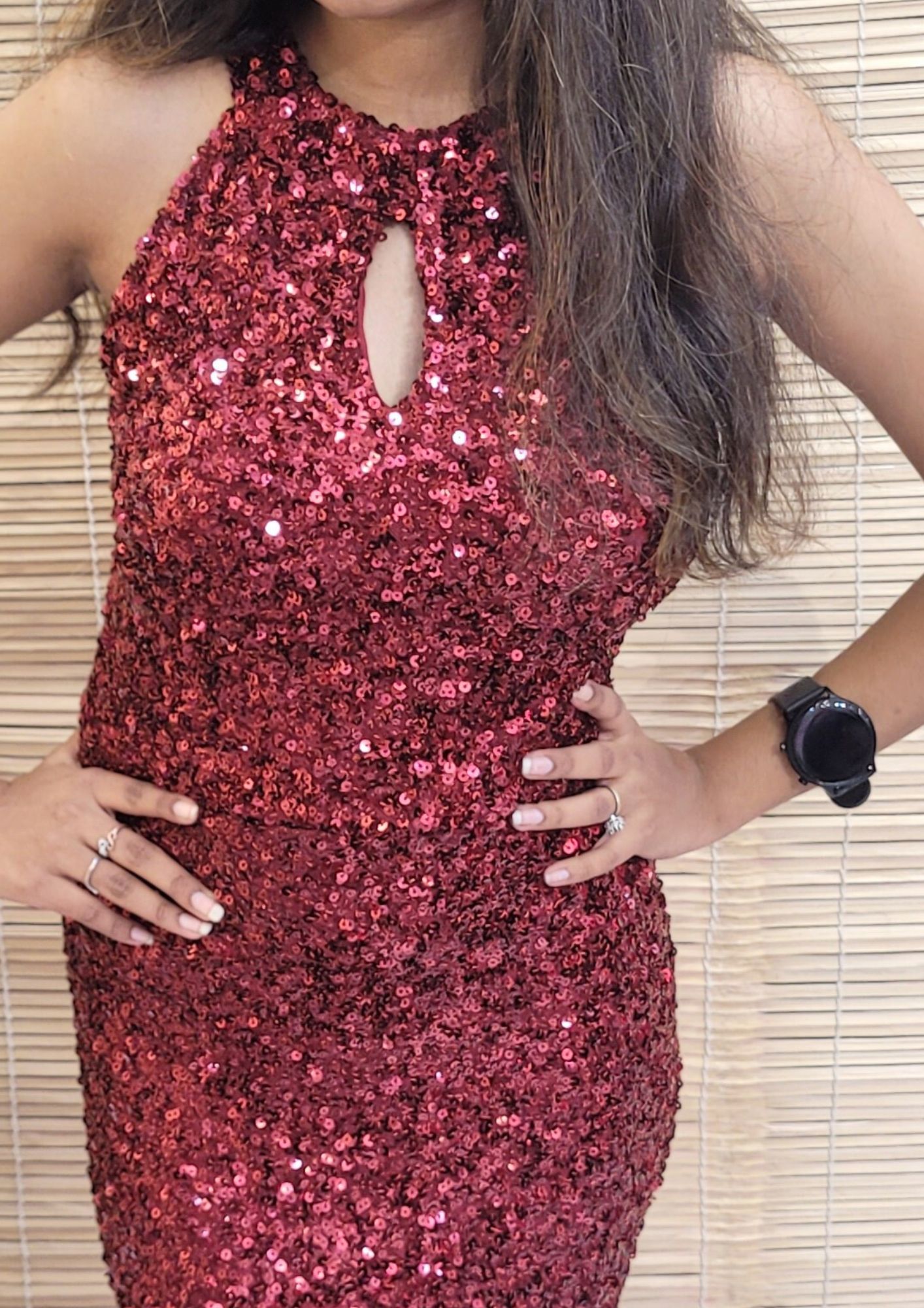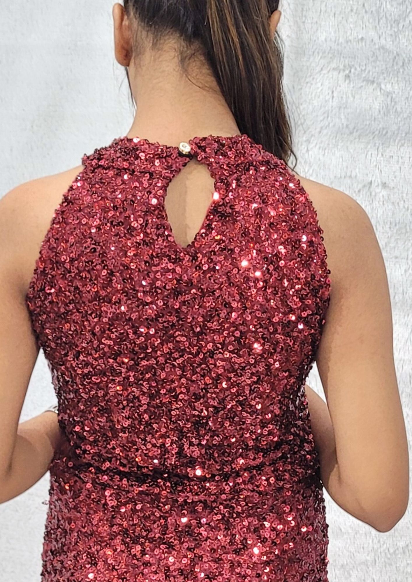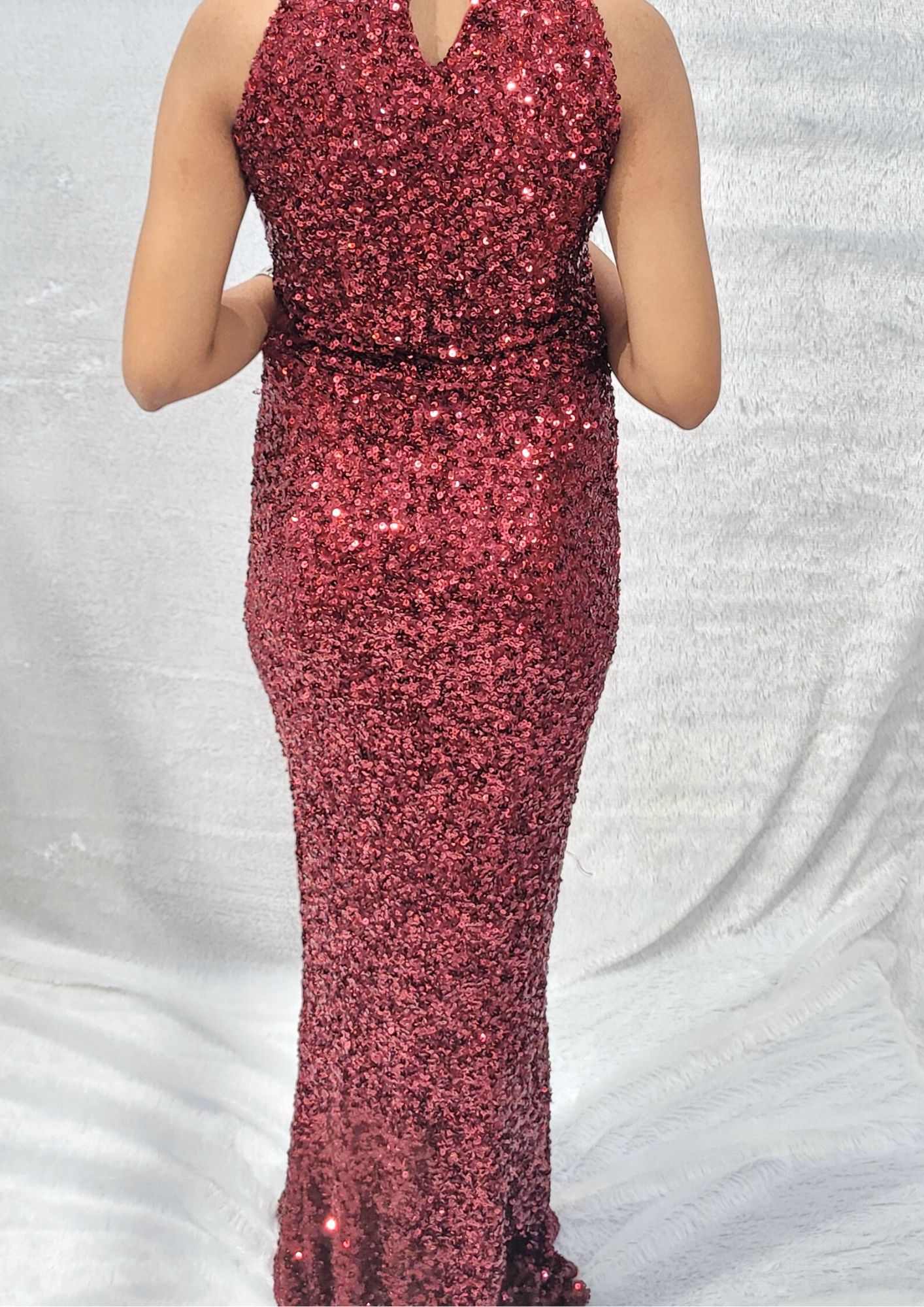 - Maroon Sequin Body fit gown